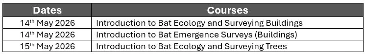 This one day course will provide an introduction to surveying buildings for roosting bats. We will visit a known roost site for various species during the course and include a theory session on bat ecology, survey techniques and legislation.
